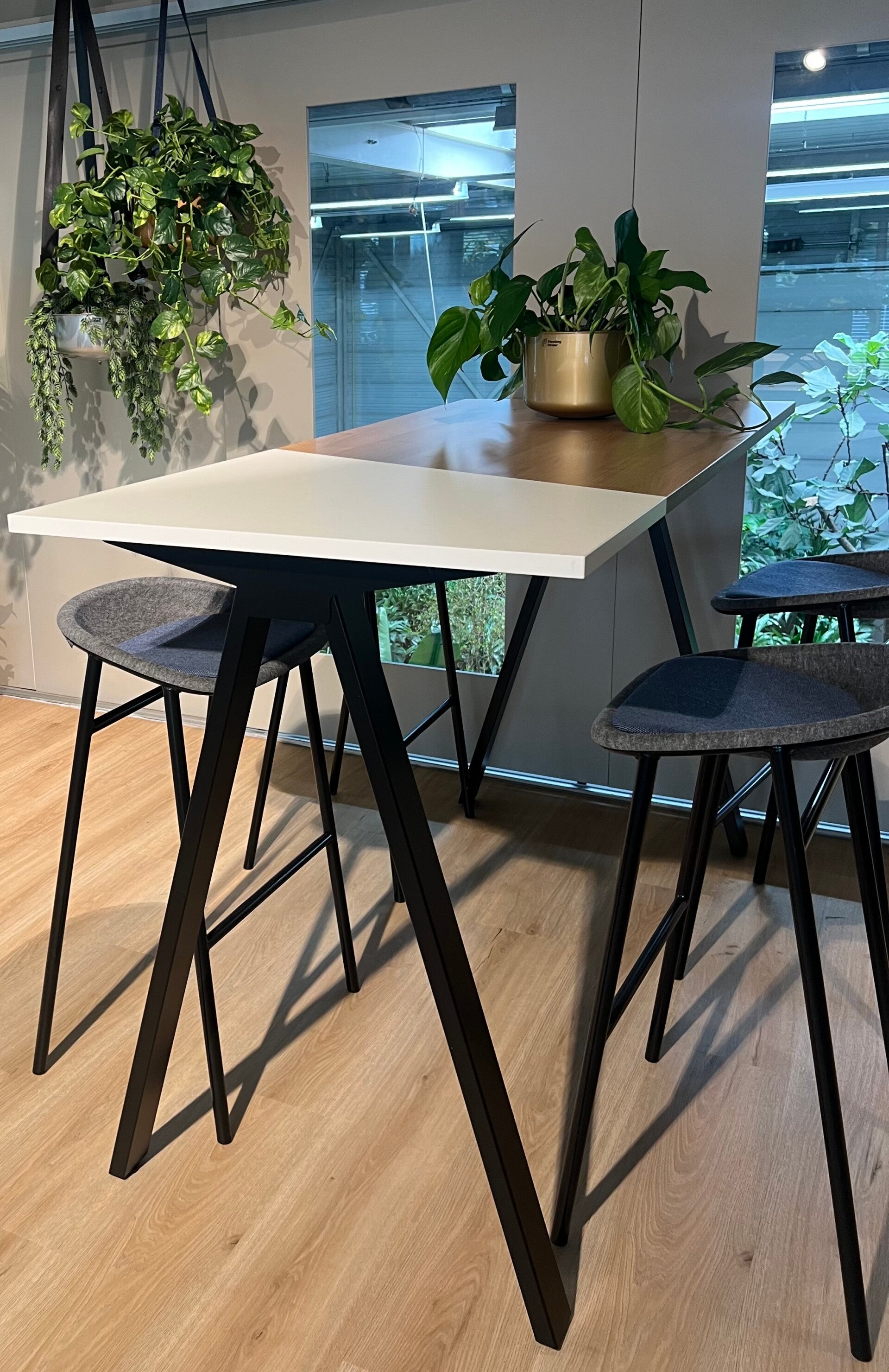 Bij Planting Power zijn de toegewijde medewerkers dagelijks bezig met duurzaamheid voor de planten en klanten met wie zij door heel Nederland werken. Bij de herinrichting van de showroom in Almelo was de wens om dat ook in de showroom te laten zien. De Twiks bartafel past daar uitstekend bij. Het mooie is dat bezoekers die aan de hoge bartafel plaatsnemen een blik kunnen werpen op de vele planten in het pand die ergens in Nederland een nieuwe plek gaan krijgen.